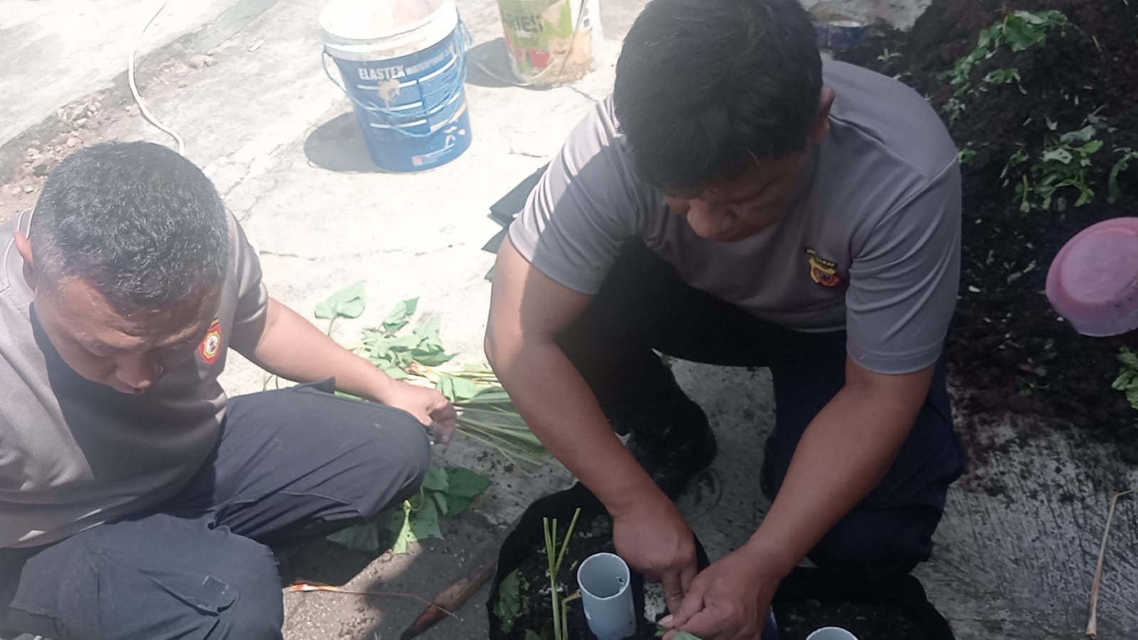Proses zero waste dilakukan secara bersama-sama oleh Kasium, Kanit Intelkam, Kanit Propam, Kanit Binmas, Kanit Samapta, Ka SPKT 2, serta Bhabinkamtibmas sebagai upaya mengurangi limbah organik dengan mengolahnya menjadi pupuk kompos yang bermanfaat. Kegiatan ini dilaksanakan pada hari Minggu, 01 Maret 2026.